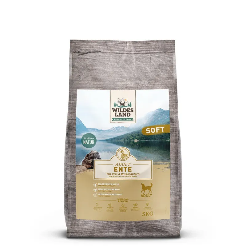 Karma Wildes Land SOFT ente - świeże mięso kaczki z dzikimi ziołami - półwilgotna, pełnoporcjowa karma dla dorosłych psów