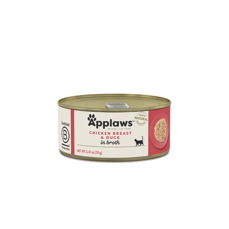 Karma Applaws nie zawiera sztucznych barwników, sztucznych aromatów, konserwantów, glukozy lub dodatkowych witamin. Udział mięsa w karmie wynosi 70%. Mięso drobiowe pochodzi z hodowli karmionej naturalną paszą, niezawierającą hormonów. Mięso rybne z właściwego połowu. Naturalne źródło tauryny niezbędne do prawidłowego funkcjonowania dla zdrowia oczu i serca