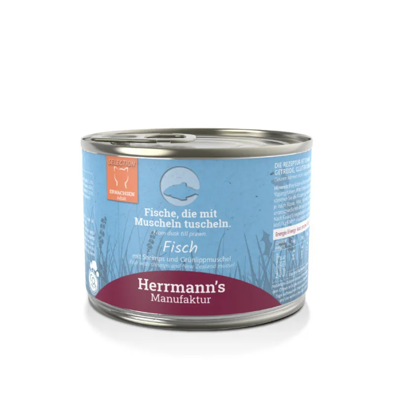 Co jest w karmie? 90% łososia i 4,3% krewetek dostarczają mnóstwo kwasów tłuszczowych omega-3 i bardzo wartościowego białka. Krewetki i małże zielonowargowe dostarczają naturalną taurynę, a dodatkowo małże zielonowargowe wspomagają stawy i chrząstki. Do tego wartościowe płatki kokosowe ze zdrowymi kwasami tłuszczowymi i błonnikiem wzmacniającym zdrowie jelit. Recepturę uzupełniają drożdże piwne (bogate w witaminy grupy B), olej słonecznikowy (dostarcza witaminę E), spirulina (wspiera odporność), olej z wątroby dorsza (dostarcza witaminę A) i algi morskie (źródło jodu).