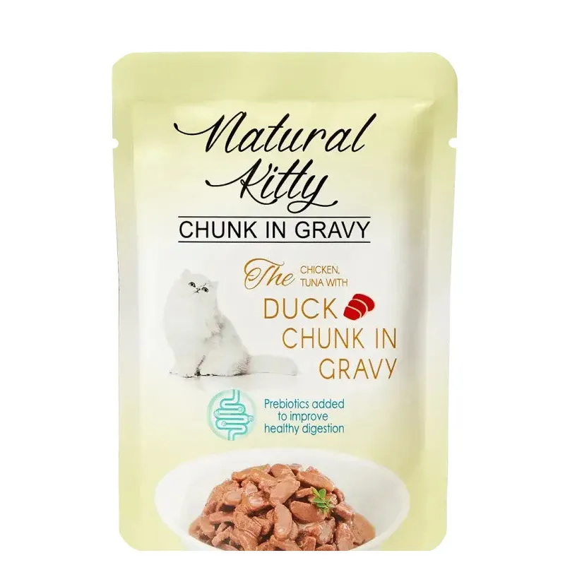 Kompletna mokra karma z prawdziwymi kawałkami kurczaka, tuńczyka, kaczki i wątróbki drobiowej w pysznym sosie. Dostępna w wygodnym opakowaniu w formie saszetki.
