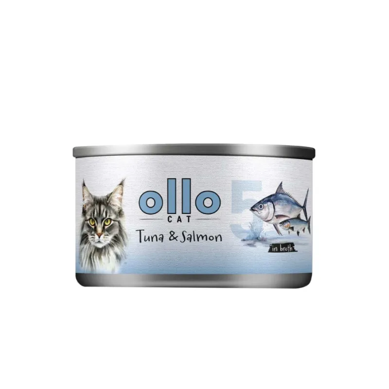 Karma mokra dla kota Ollo nr 5 tuńczyk i łosoś to wyjątkowa, naturalna mokra karma dla kotów, stworzona z myślą o wszystkich kocich smakoszach – od kociąt po seniorów. Łączy prostotę składu, wysoką zawartość mięsa, ryb, a także owoców morza oraz naturalny bulion, który nie tylko podkreśla smak, ale też wspiera nawodnienie organizmu kota.