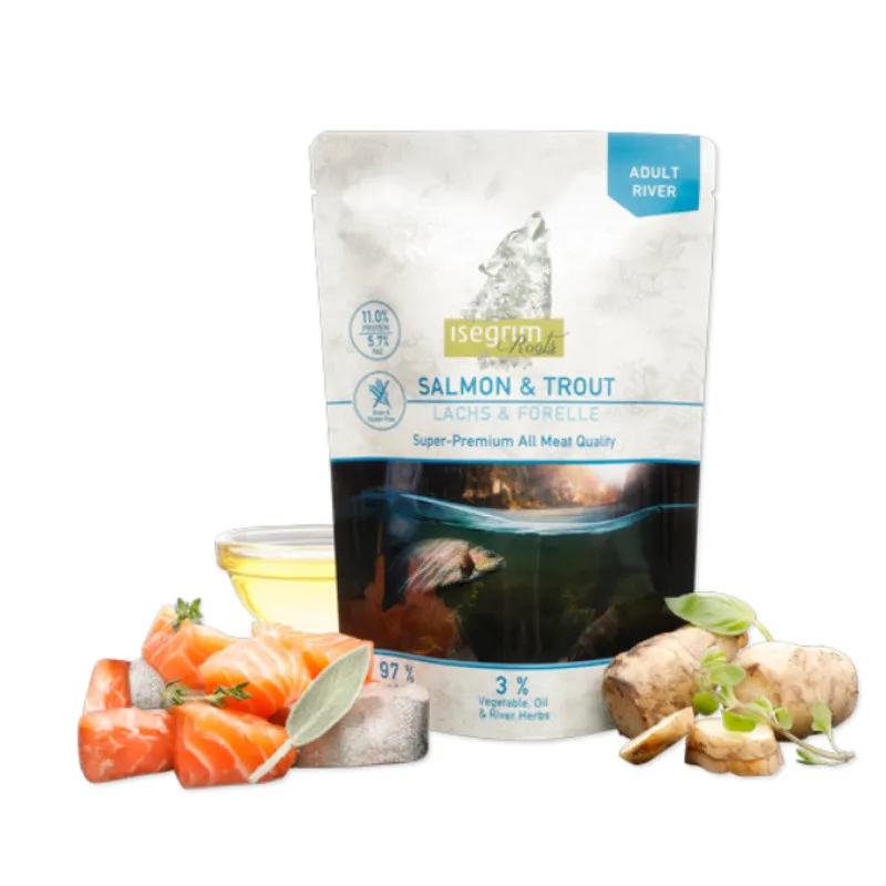 Skład karmy Isegrim saszetka ŁOSOŚ i PSTRĄG: