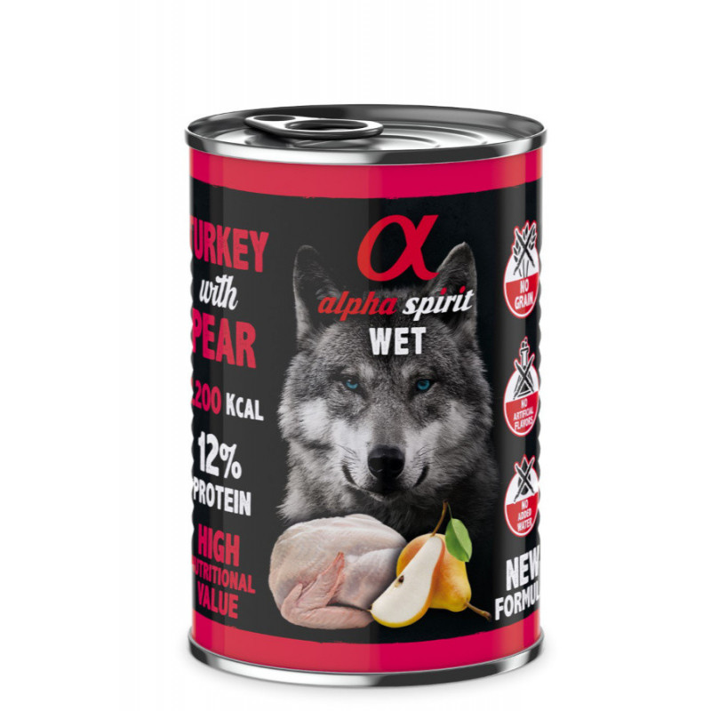 Alpha Spirit INDYK z GRUSZKĄ to pełnowartościowa, bezzbożowa mokra karma dla psów wszystkich ras. Nasz unikalny produkt zawiera aż 93% świeżego mięsa, który jest najwłaściwszym pokarmem dla psa oraz 4% owoców. Jest także wzbogacona w witaminy i składniki odżywcze, które wspierają najważniejsze funkcje życiowe czworonoga. Nie zawiera konserwantów i sztucznych barwników. Przez koncentracje składników i wysoką zawartość pełnowartościowego białka, które jest podstawowym budulcem i źródłem energii, nasze karmy są BARDZO WYDAJNE. Niewielka porcja zaspokaja zapotrzebowanie na wszystkie składniki odżywcze. Dodatek świeżych owoców i przypraw korzystnie wpływa na zapach i smak produktu.