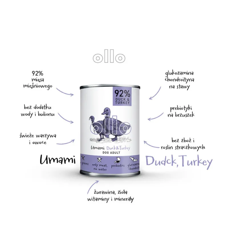 Karma mokra dla psa Ollo Umami Power Duck and Turkey – KACZKA z indykiem