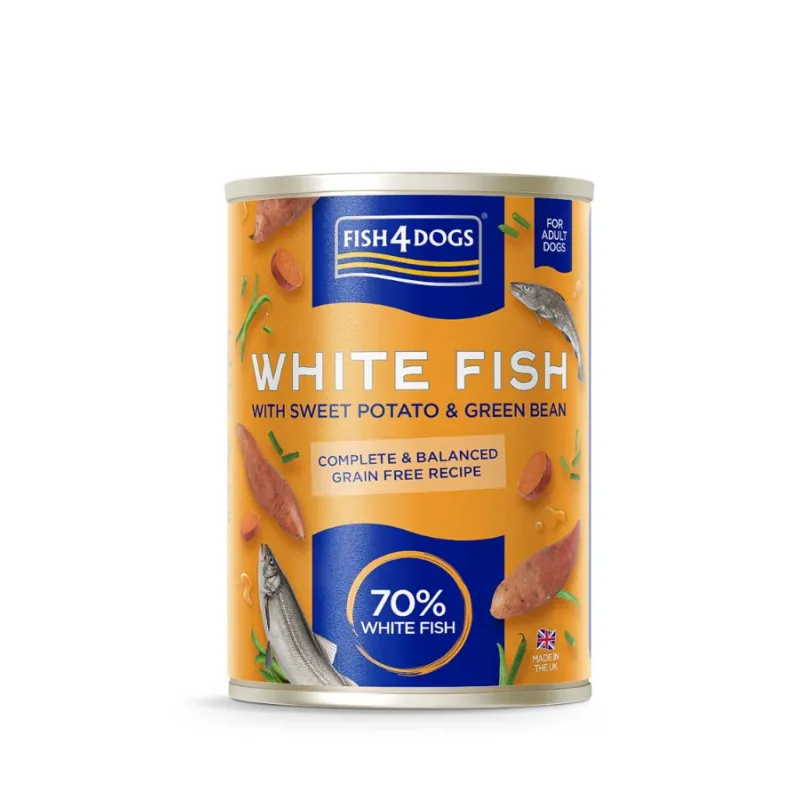 Fish4Dogs BIAŁA RYBA z batatami i zieloną fasolką to karma dla psa z problemami trawiennymi. Białko ryb ma bowiem bardzo wysoką przyswajalność. Jest trawione w ponad 90% przez psy, a do tego jest delikatne i lekkostawyne.
