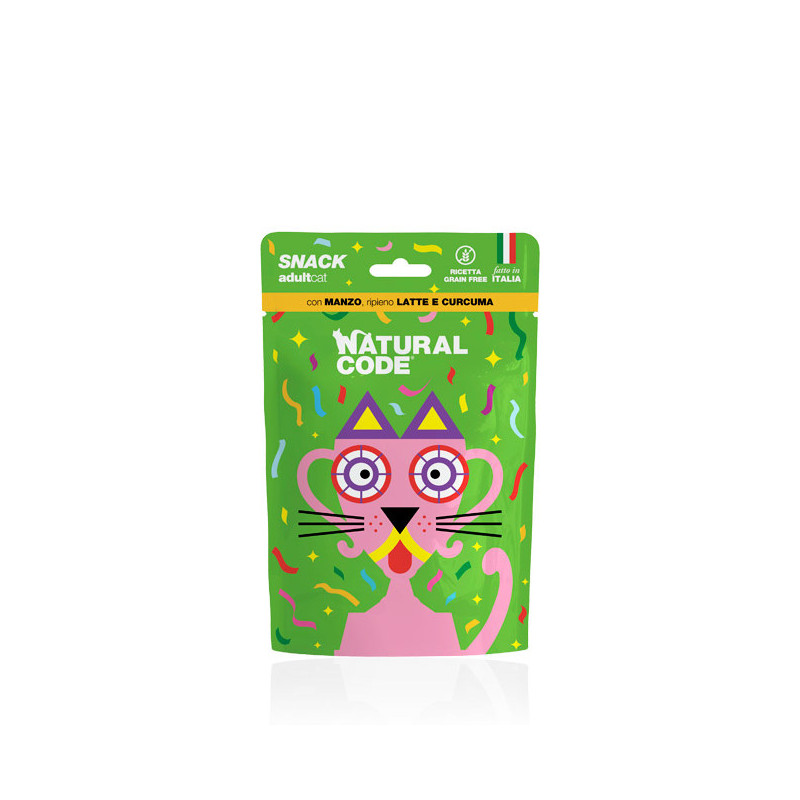 skrobia ziemniaczana , groch , dehydratyzowane białko zwierzęce (wołowina 4%), tłuszcz zwierzęcy, białko ziemniaczane (4%), mąka z soi łuskanej, hydrolizowane białko zwierzęce, odtłuszczone mleko w proszku (8% w nadzieniu), czyste skoncentrowane włókno surowe ( z naturalnej lignocelulozy 0.5%), chlorek sodu, kurkuma 0.2%