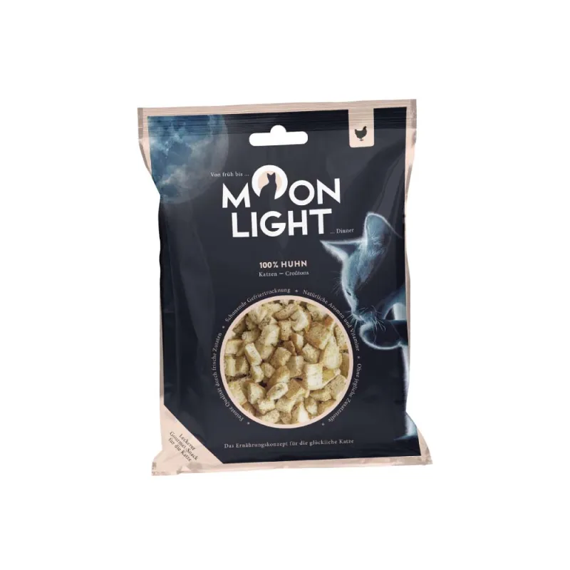 Ze względu na proces liofilizacji, przysmaki Moonlight Dinner są naturalne i lekkostrawne. Monoproteinowa formuła (100% kurczaka) zawiera tylko jedno źródło białka, aby zminimalizować ryzyko alergii i nietolerancji. Nasze smakołyki nie zawierają także zbóż i glutenu.