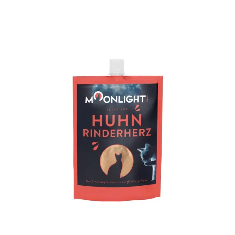 Przysmaki dla kota Moonlight Dinner Sos Kurczak z Sercami Wołowymi to naturalny smakołyk w pysznym sosie – połączenie smaku i zdrowia! Lekkostrawny dodatek do codziennej diety, który łączy aromatyczny bulion z kurczaka z delikatnymi kawałkami mięsa i Sercami wołowymi. Stworzony z myślą o najbardziej wybrednych kocich smakoszach! Ten przysmak nie tylko rozpieszcza podniebienie, ale także wspiera zdrowie i dobre samopoczucie Twojego kota.