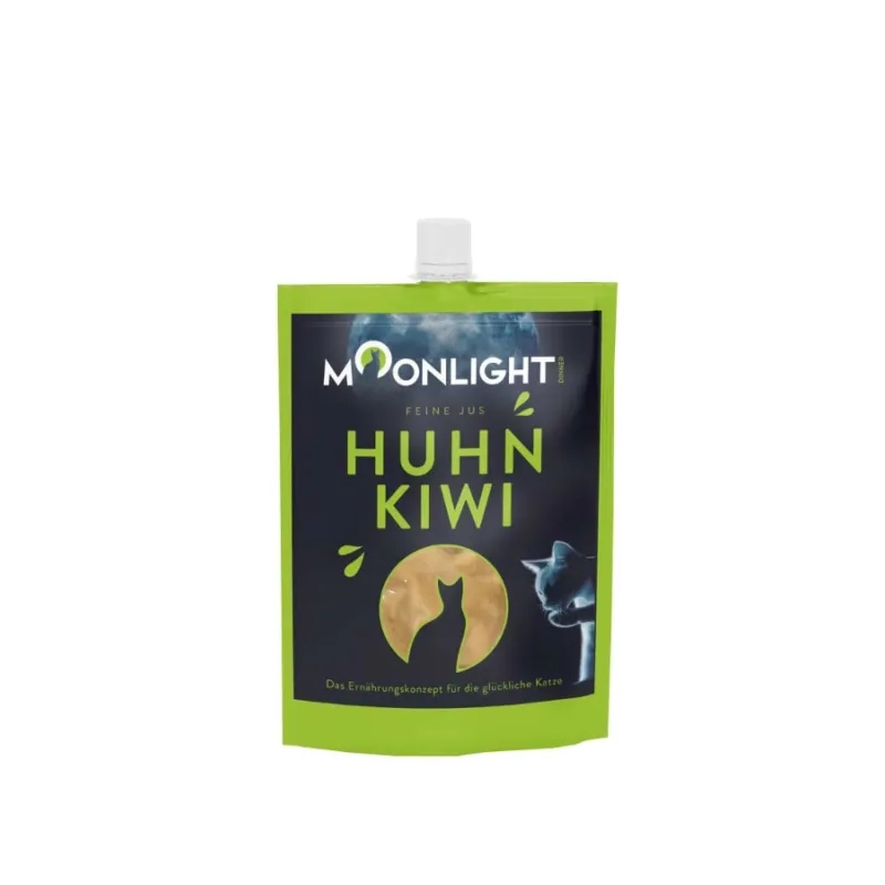 Przysmaki dla kota Moonlight Dinner Sos Kurczak z Kiwi to naturalny smakołyk w pysznym sosie – połączenie smaku i zdrowia! Lekkostrawny dodatek do codziennej diety, który łączy aromatyczny bulion z kurczaka z delikatnymi kawałkami mięsa i odrobiną egzotycznego kiwi. Stworzony z myślą o najbardziej wybrednych kocich smakoszach! Ten przysmak nie tylko rozpieszcza podniebienie, ale także wspiera zdrowie i dobre samopoczucie Twojego kota.