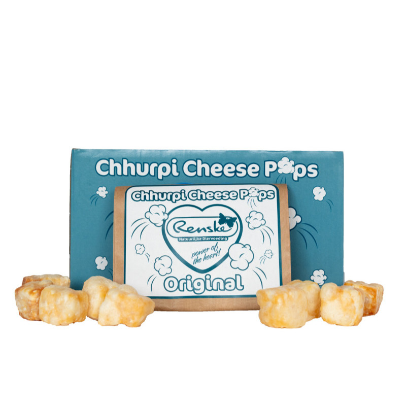 Cheese Pops to kawałki gryzaka Chhurpi, które powstają poprzez jego podgrzanie. Podczas tego procesu zwiększają one swoją objętość ok. 3-krotnie, zachowując przy tym wszystkie swoje wartości odżywcze i witaminy. Cheese Popsy są idealne do schrupania na raz, ale jest to także świetnie uzupełnienie diety psa o cenne, naturalne składniki. Churpi to ser, który produkowany jest według himalajskiej receptury. Powstaje on jedynie z dwóch składników: odtłuszczonego mleka i soku z limonki.