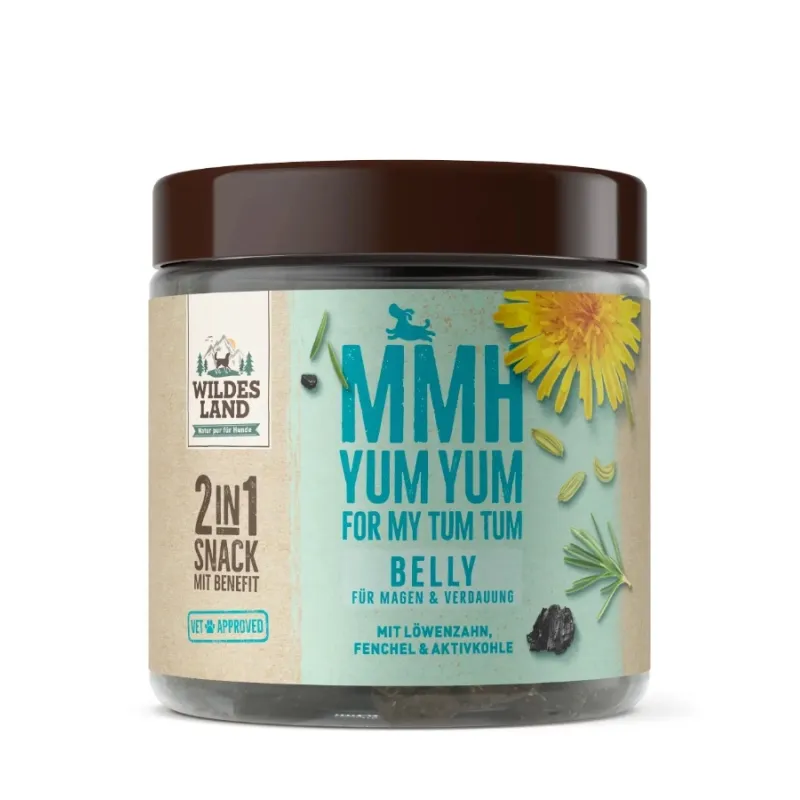 Przysmaki funkcjonalne BELLY 2w1 - przysmaki z dodatkowymi korzyściami: łagodzą wzdęcia, wspierają dobre funkcjonowanie jelit, zapewniają łagodny detoks i wzmacniają odporność. Dla lepszego samopoczucia Twojego psa każdego dnia.