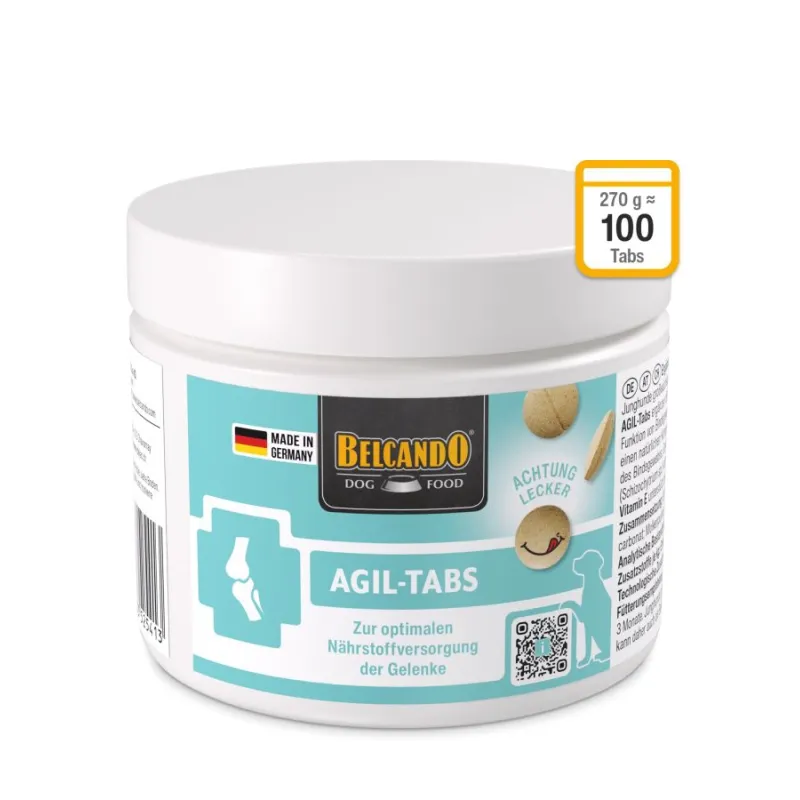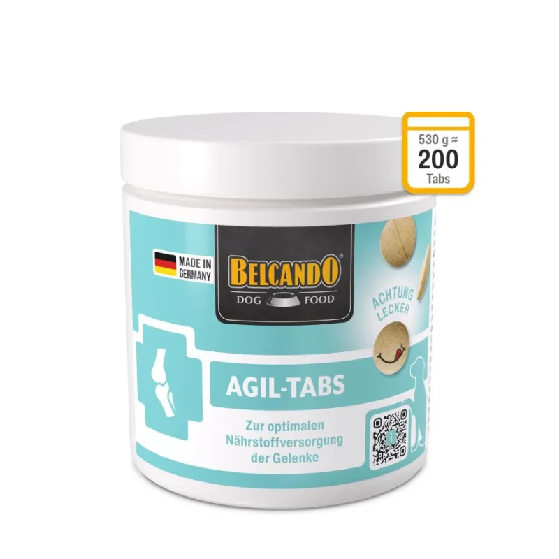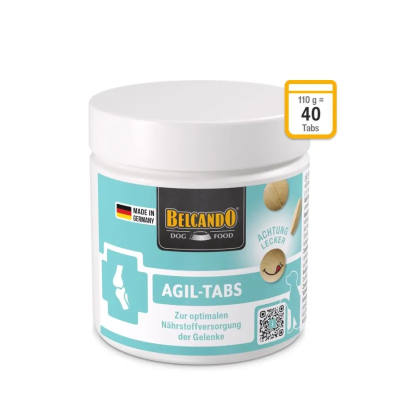 Belcando AGIL tabs (Cani Agil) to niemiecki preparat żywieniowy dla psów do profilaktyki i leczenia schorzeń tkanek chrzęstnych, kostnych i ścięgien.