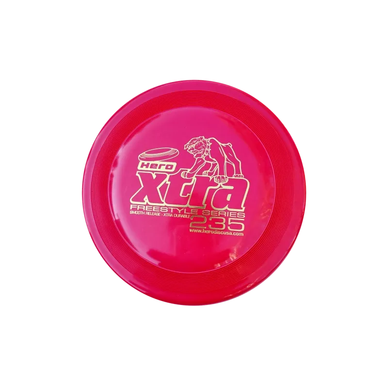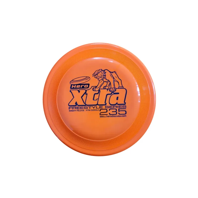 Powierzchnia dysku jest gładka i śliska, co sprawdza się we freestyle, ale do rzutów dystansowych lepiej wybrać Xtra w wersji distance. Hero Xtra, ze względu na szybkość i właściwości tworzywa, nie jest zalecanym dyskiem na początek, w szczególności dla niedoświadczonego psa. Docenią go ambitni dog frisbiarze, właściciele szybkich, dobrze zmotywowanych psów.